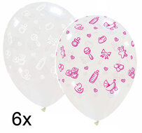 Baby Stuff Transparante ballonnen mix wit-roze, 6 stuks, 30cm
