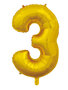 folieballon cijfer 3, Goud, 66 cm / 26 inch