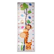 Compacte groeimeter sticker met een giraffe, aapjes en vogels bij een boom.