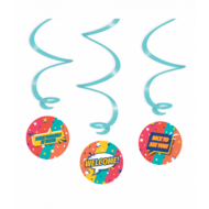 3 swirl hangdeco's met een diameter van 14 cm en elk circa 70 cm hoog.