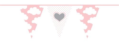 Lieve, zachtroze vlaggenlijn met wolkjes en hartjes. Vier de babyshower, geboorte of ander feestje met deze leuke vlaggenlijn. Te combineren met o.a. ballonnen en hartjes slinger.