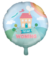 Een leuke, vrolijke folieballon voor iemand die verhuisd is. Met de tekst: Proficiat! Nieuwe woning