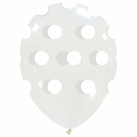 Mooie transparante ballonnen met witte stippen (polka dots). Per ballon te bestellen dus je zit niet aan een bepaalde hoeveelheid vast! Korting vanaf 5 stuks.