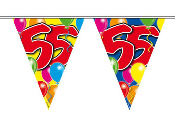 Vlaggenlijn Balloons met leeftijd 55 jaar.